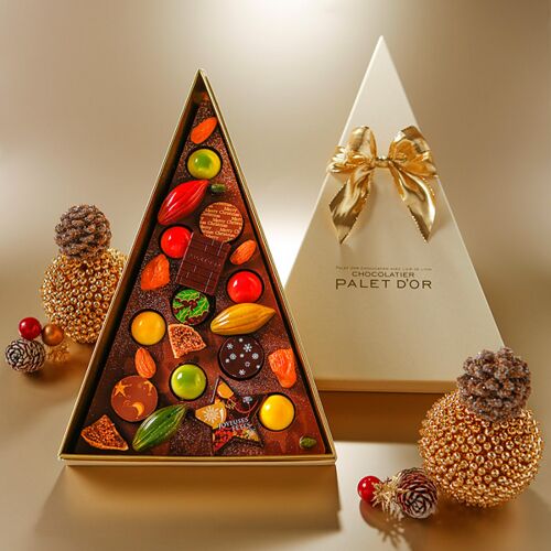 クリスマスツリーショコラ 自家製ショコラをメインに彩り豊かなボンボンショコラやドライフルーツを華やかに飾った贅沢なクリスマス限定コフレ。オンライン:11月27日(月)受付開始 12月1日(金)全店販売開始 販売価格 5500円(税別)詳しくはこちら