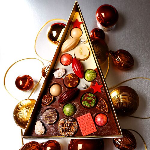 X’masツリーショコラ 11月5日(木)よりご予約受付開始 12月1日(火)より販売開始 ツリーのオーナメントのように華やかに散りばめられたショコラは、スペシャリテのパレドオールと、優しい味わいのガナッシュ、食感が楽しいボンボンなど様々なショコラの組み合…